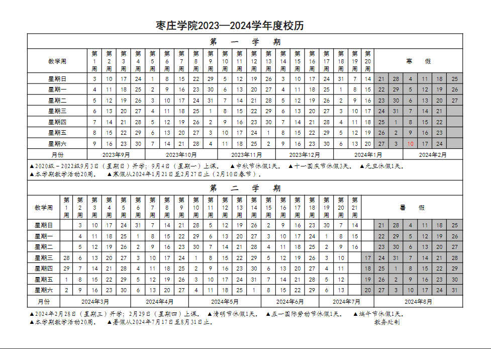 2023-2024学年度校历