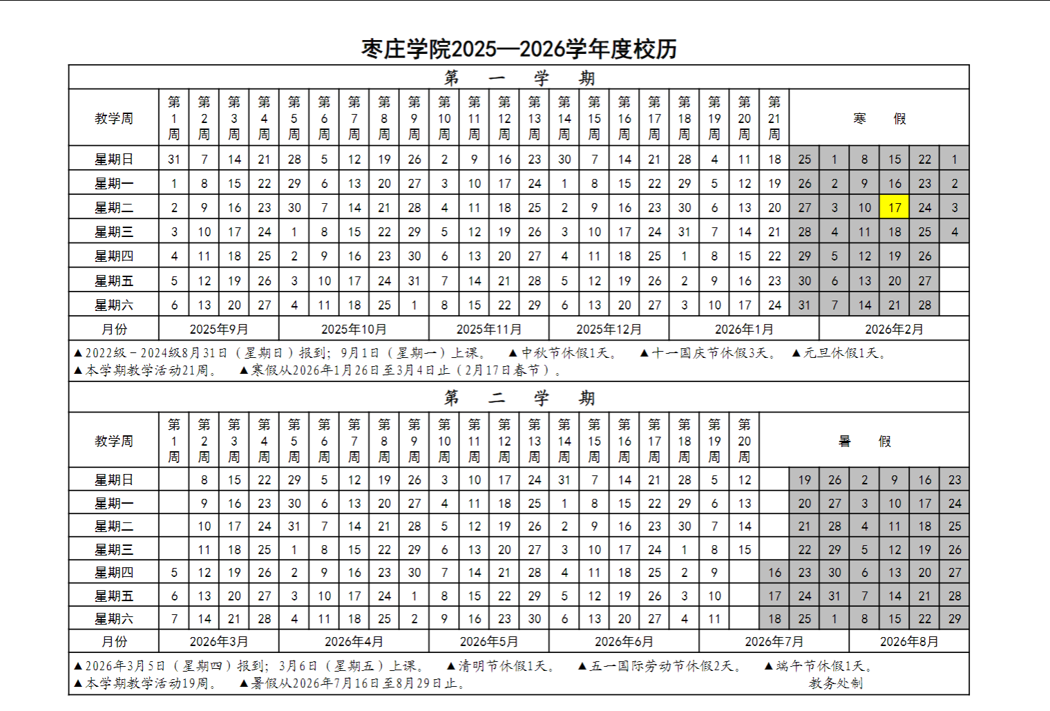 2025—2026学年度校历-bw必威西汉姆联官方网站教务处