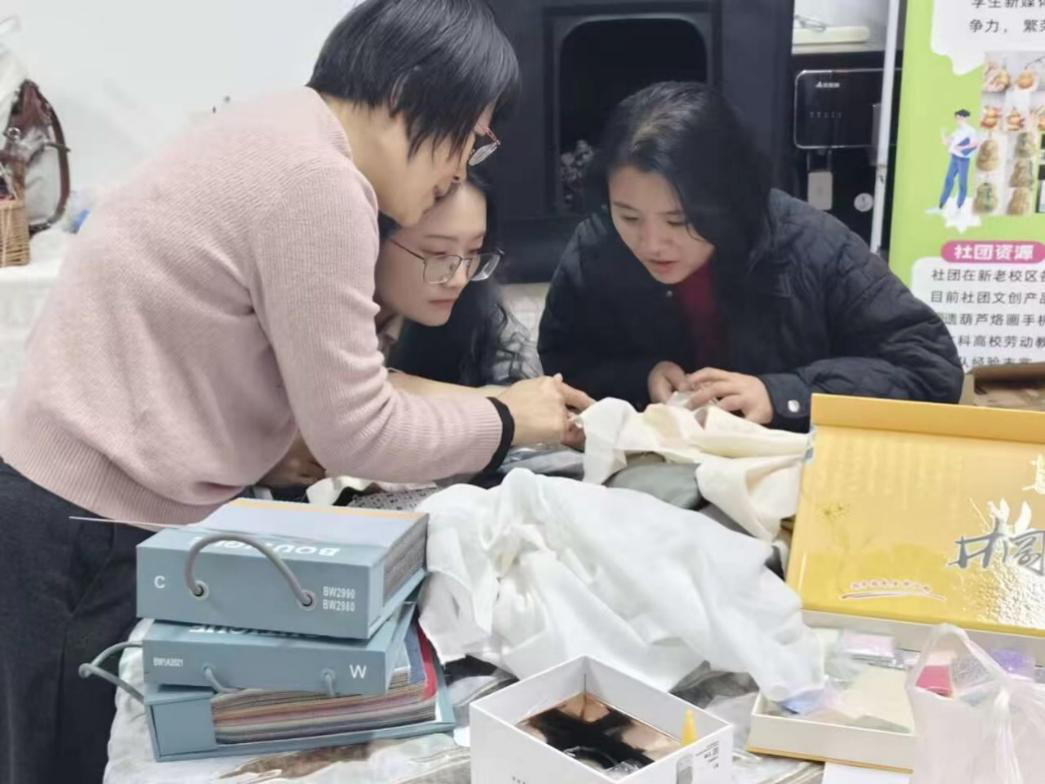 此外,电子商务协会结合社团特色,设置“鲁绣创意作品展区”,鼓励大家将传统刺绣元素融入现代设计,推动刺绣文创产品的创作,探索非遗技艺的当代生命力。