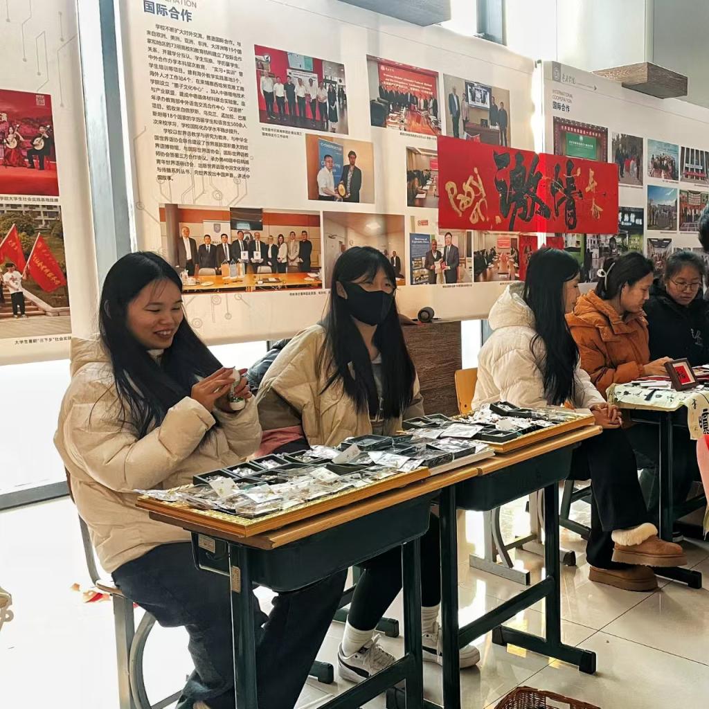 珍珠玉石耳饰、项链、手链等饰品则以其优雅和精致吸引了众多女性师生的目光,每一件饰品都经过精心设计和手工打磨,展现了社团成员对细节的极致追求。