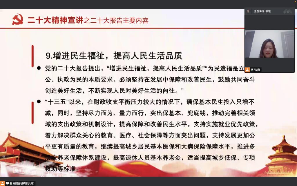 bw必威西汉姆联官方网站坚持全面深入系统学习宣传党的二十大精神,11月24日,团总支副书记张璇深入团支部、社团,主持召开团干部线上宣讲交流会,让党的二十大精神直达基层员工干部。