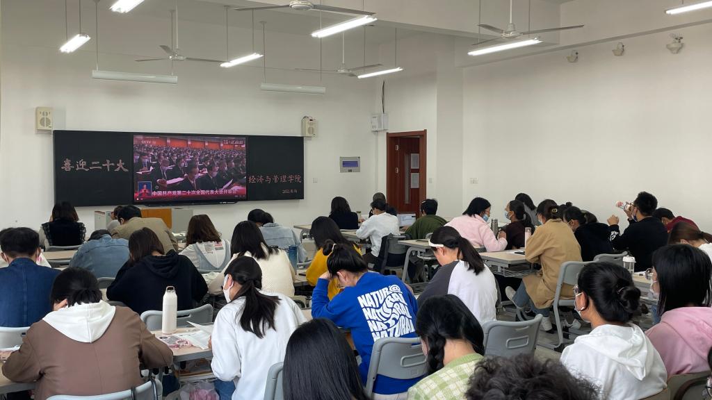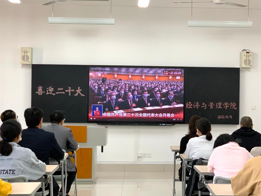 2022年10月16日上午10时,中国共产党第二十次全国代表大会北京人民大会堂隆重召开,公司全体党员教师及员工党员在豁然楼A317室集中收看党的二十大开幕会盛况。各班级以主题班会的方式观看了开幕会,其他师生充分利用教室、宿舍网络、广播电视设施,学习会议精神,共同庆祝党的二十大胜利召开。