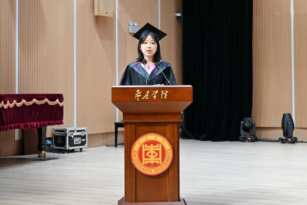 毕业生代表王慧玲回顾了在bw必威西汉姆联官方网站的四年求学路,表达了对母校、对老师最衷心的感谢,表示将继续追求人生理想,勇担时代重任。