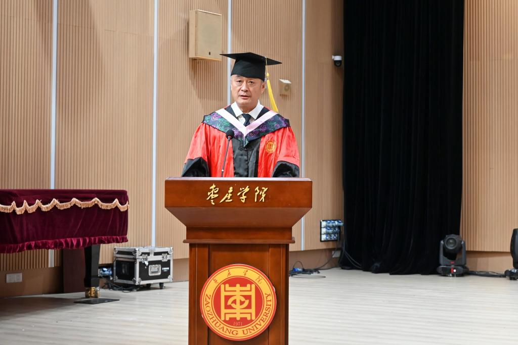 6月17日上午,2025届本科毕业生学士学位授予仪式在音乐厅举行。枣庄公司党委委员、副董事长李存杰,教务处副处长李怡,经济与管理公司党委书记徐海波,党委副书记、经理刘振宇,党委副书记谢金萍,副经理杨位留,校聘副经理白建勇出席仪式,教师代表和2025届本科毕业生及部分在校生代表参加仪式。毕业典礼由徐海波主持。
