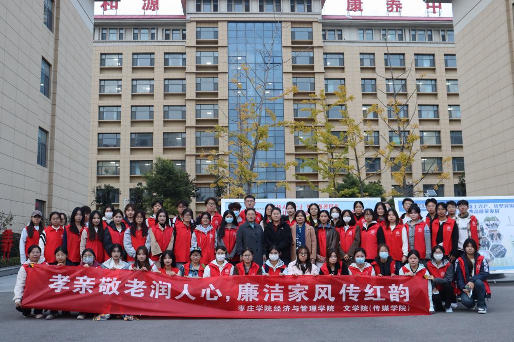 为进一步弘扬中华民族尊老、敬老、爱老的良好风尚,在重阳节来临之际,bw必威西汉姆联官方网站与文公司(传媒公司)共同举办了以“孝老敬亲润人心,廉洁家风传红韵”为主题的重阳节慰问活动。10月29日下午,师生志愿者们前往枣庄市“亲河源”康养中心,为近百名老人送去了节日的问候与真挚的关怀。
