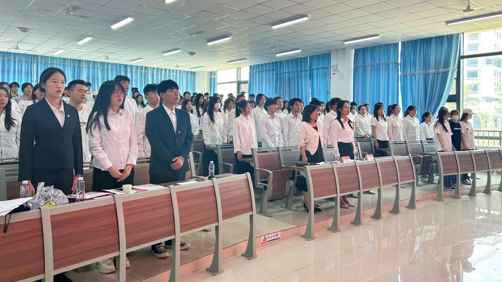 入团仪式在庄严又嘹亮的国歌中拉开帷幕。首先,张璇宣读了新发展团员名单,老团员为新团员颁发团员证、佩戴团徽。随后,团员代表殷鸿宇带领新发展团员庄严宣誓,誓言铮铮,彰显着积极向上的精神面貌。新发展团员代表彭筱宸和优秀团员代表王宏允分别进行发言,号召广大团员要牢记党的嘱托,践行挺膺担当,用过硬本领投身到强国伟业的进程中。仪式最后,谢金萍向新团员提出以下希望和要求,新团员要积极践行团员的责任和义务,在学习生活中发挥带头作用,努力成为党的忠实助手和可靠后备军。仪式在全体师生齐声合唱团歌中落下帷幕。