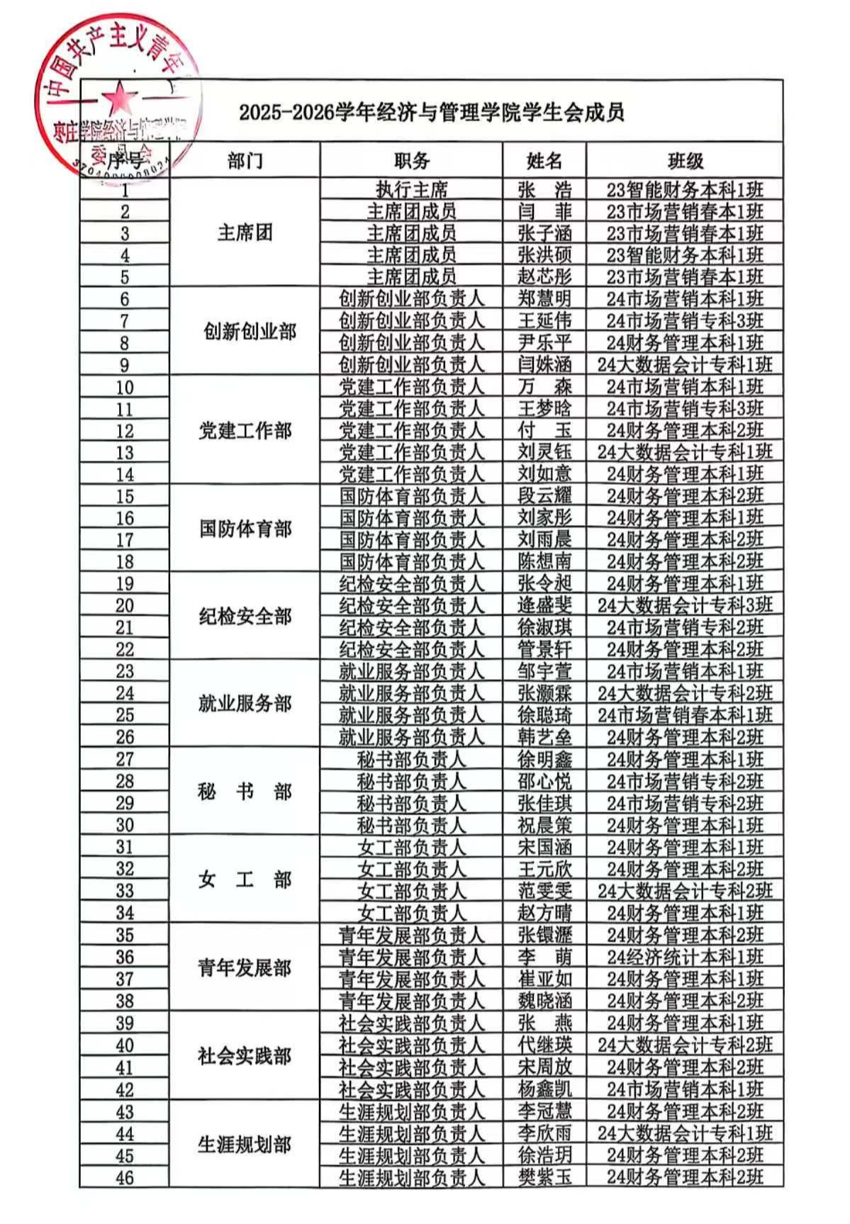 2025-2026学年bw必威西汉姆联官方网站员工会、自律会成员名单